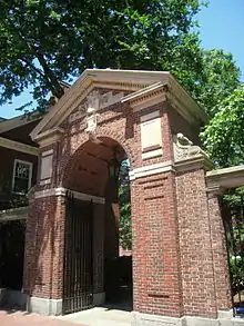 In 1901 a gate to Harvard Yard, directly opposite the clubhouse, was erected. According to a notice published in the Harvard Crimson, on March 20, 1909:
