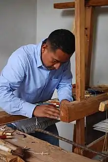 ![]() Gutierrez at his loom in Teotitlán del Valle, Oaxaca | |