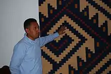 Since 2012, Gutierrez has been doing research work on Zapotec textiles and natural dyes, along with ancient symbols from the Zapotec culture.[8][1] In 2016, he was selected for the Artist Leadership Program of the National Museum of the American Indian (Smithsonian) .[3][10][5] This permitted him to study the institution's colecctions, up to 200 years old, at the Cultural Center in Suitland, Maryland.[8]
