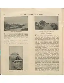 By the 1920s Port Burwell was becoming a summertime tourist destination famous for its sandy beaches, which had formed over the years as a natural result of wind and water currents interacting with the breakwaters extending out from the harbour mouth.[10] This shoreline accumulation was a well-known phenomenon which also necessitated periodic dredging to keep the harbour clear.[11] Port Burwell was also becoming a focus for natural gas drilling onshore as well as the collection point for pipelines from gas wells drilled offshore.[12] It also gained fame as the home of McConnell Nurseries, which relied upon the sandy loam in nearby farmland and the reduced frost risk near the lakefront. It developed a nation-wide mail order business for seeds and plants and for many years was the largest employer in the area.[13] The harbour's coal business changed when the Ashtabula was wrecked in a collision with a freighter in 1958, ending the railcar ferry's daily coal shipments. instead, the harbour became known for mountains of loose coal delivered by freighters for later pier-side loading into waiting railcars and transport trucks. All this was wound up after the federal government announced in 1970 it would no longer fund dredging of the harbour to support coal freighter traffic.