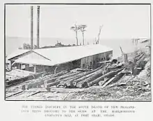 Work started on the 3 ft 6 in (NZR gauge) Port Craig tramway in 1917. It ran south from Port Craig, parallel to the coast, for 14.6 km (9.1 mi) to Wairaurahiri River,[8] with a further 9.8 km (6.1 mi) of branches.[9] It extended over a mile from the mill by 1921[10] and was extended in 1924.[11] The line was worked by steam locomotives from 1919,[12] including the largest bush locomotive built by A & G Price, a Meyer type Ar 0-4-4-0T,[13] which was on the line from 1926 to 1931.[14] The rails were removed in 1939.[15]