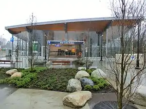 As part of Metro Vancouver, Port Moody is connected to the TransLink public transit system by way of numerous bus routes. It also has the first station on the West Coast Express commuter rail line outside downtown Vancouver. The Millennium Line's Evergreen Extension, part of TransLink's SkyTrain system, links Port Moody with Coquitlam to the east and Burnaby and Vancouver in the west. In August 2018, U-bicycle launched a dockless bicycle sharing system in the city.[13] Additionally, Modo has five vehicles located in Port Moody available for carsharing.[14] As of June 2019, seven Level 2 electric vehicle charging stations were located in Port Moody, with the capacity for 14 vehicles.[15][16]