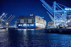 In 2011, no American port could handle ships of the PS-class Emma Mærsk and the future Maersk Triple E class size,[16] the latter of which needs cranes reaching 23 rows.[17] In 2012, the port and the U.S. Army Corps of Engineers deepened the port's main navigational channel to 53 feet, which is deep enough to accommodate the draft of the world's biggest container ships.[18][19] However, Maersk had no plans in 2014 to bring those ships to America.[20]