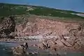 The beach is at the seaward end of the Cot Valley and is part of the Aire Point To Carrick Du Site of Special Scientific Interest.[1][2]