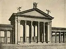 Besides the pre-existing temples, the enclosure included a library erected by Octavia in memory of her son Marcus Claudius Marcellus, the curia Octaviae, and scholae (an assembly hall and lecture rooms). Whether these were different parts of one building, or entirely different structures, is uncertain. It was probably in the curia that the senate is recorded as meeting.[3] The whole is referred to by Pliny the Elder as Octaviae opera.[4]