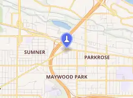 The Portland Immigrant Statue is a statue of an immigrant man by Jim Gion,[1] installed near the intersection of Northeast Sandy Boulevard and Killingsworth Street in Portland, Oregon's Parkrose neighborhood, in the United States.[2][3] The statue was commissioned by the Parkrose Community Foundation to commemorate the neighborhood's centennial anniversary,[4] and installed in 2011.[5][6]