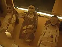 Idealism is often used as a means to indicate status. Old age is a sign of wisdom and hard work as in Senwosret III's case as well as wealth expressed through corpulence of the body. Nevertheless, old men are rarely depicted, but such work is found almost in every period especially in the Old and Middle Kingdoms while it can reach photographic realism in the Saite period.[15] There is a great difference between kings and queens depictions, and the non-royal. As the king and queen are both royal as well as religious institutions by themselves, they can only be rendered as perfect as possible. Hence, idealism is used and with the progress of time, introducing normal tendencies were introduced. This is not necessarily the case with normal folk or even high status officials: they can be realistically and individually rendered such is the case with the bust of Ankhhaf of the fourth dynasty.[16] The latter is a special and unique case since the prevailing inclinations to emulate the royal way of portrayal especially of very high status officials as is the case with Ankhhaf. There is a general observation that the lower the social status the less idealistic and conventional rendering of the person.[17] Still, such works are still debated whether they are true portraits or idealized and conventionalized.[18]