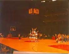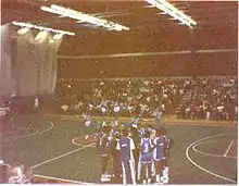 Portsmouth had to borrow Kingston's red kit as they only had a white strip available and league rules at the time insisted that away teams wore white.[8] The court was less than half full of spectators and the match did little to create an atmosphere, with Portsmouth trailing 20–8 after five minutes and 51–34 at half-time before finally losing 115–72.[1] Again the Americans led the scoring, Shackleford netting 31 points and Owen 22, with nobody else in double figures for Portsmouth.