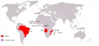 The Portuguese-speaking African countries (Portuguese: Países Africanos de Língua Oficial Portuguesa; PALOP), also known as Lusophone Africa, consist of six African countries in which the Portuguese language is an official language: Angola, Cape Verde, Guinea-Bissau, Mozambique, São Tomé and Príncipe and, since 2011, Equatorial Guinea.[1] The six countries are former colonies of the Portuguese Empire. From 1778 until independence, Equatorial Guinea was also a colony of the Spanish Empire. In 1992, the five Lusophone African countries formed an interstate organisation called PALOP, a colloquial acronym that translates to African Countries of Portuguese Official Language (Portuguese: Países Africanos de Língua Oficial Portuguesa).[2] The PALOP countries have signed official agreements with Portugal,[3] the European Union[2] and the United Nations,[4] and they work together to promote the development of culture, education and the preservation of the Portuguese language.[1] Together with Portugal and Brazil in 1996, the Portuguese-speaking African countries established the Community of Portuguese Language Countries (Portuguese: Comunidade dos Países de Língua Portuguesa, abbreviated to CPLP),[5] which East Timor later joined in 2002 and Equatorial Guinea in 2014.