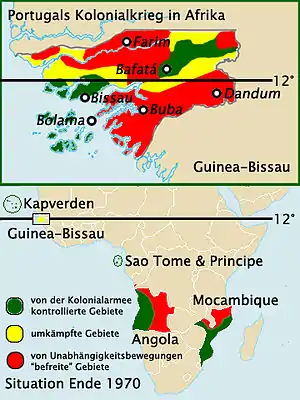 Portuguese Guinea (Portuguese: Guiné), called the Overseas Province of Guinea from 1951 until 1972 and then State of Guinea from 1972 until 1974, was a West African colony of Portugal from 1588 until 10 September 1974, when it gained independence as Guinea-Bissau.