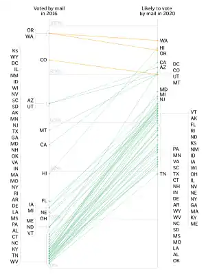 According to a 2020 study, Democratic and Republican voters became increasingly polarized on their support for postal voting during the coronavirus pandemic.[21]