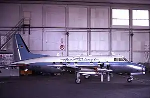 The Potez 840 was an all-metal cantilever-wing monoplane with a retractable tricycle landing gear. It had a crew of three and a cabin for 18 passengers. It was powered by four 440 shp (328 kW) Turbomeca Astazou II turboprop engines. The prototype first flew on 29 April 1961; a second aircraft flew in June 1962 and had more powerful 600 shp (447 kW) Turbomeca Astazou XII engines. The second prototype carried out a sales tour of North America and it was planned to build a batch of 25 aircraft for Chicago-based Turbo Flight Inc. but only two more prototype aircraft were built, one for static testing.[1] The next two aircraft were designated the Potez 841 and were powered by 550 shp (417 kW) Pratt & Whitney Canada PT6A-6 turboprop engines. Another two modified Astazou-powered aircraft were produced, one in 1965 and one in 1967.