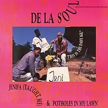 "Potholes in My Lawn" is the second single by hip hop group De La Soul, released in 1988 from their album 3 Feet High and Rising. The songs were mastered by record mixer and engineer Herb Powers Jr. The song samples "Magic Mountain" by Eric Burdon & War as well as the signature yodeling and jaw harp on Parliament's "Little Ole Country Boy" off 1970's Osmium.[1]