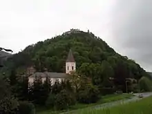 Kostol sv. Ladislava v Povazskom Podhradi is the last fourth member of the four historical buildings build nearby the castle, creating the panorama of Povazske Podhradie. It was built in the 19th century. In the premises of the church is statue of John of Nepomuk, which was coincidentally brought to Povazske Podhradie on abandoned flatboat during floods in 1784. After the floods the statue was placed on the place of its founding with five lindens around. However, after some time lindens grew together forming one massive linden-tree. From this point people started to idolize the linden with the statue as a wonder of nature until the linden was cut down during the building of new manmade basin of the river Vah.
