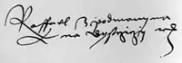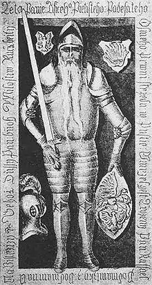 This dispute used Jan Podmanitzky and his brother Rafael Podmanitzky to gain power in the region; Považský hrad was the centre of their influence. They took the side of János Szapolyai although most of the region was under control of the Habsburgs. Possession of Podmanitzky, with a hard centre Považský hrad withstood attacks of king's army led by Katzainer, to whom Trencin gave up in the summer of 1528, but they even gained new possessions around Lednica. They were famous for their successful raids all around the region. In those times they were limitless rulers of the region; the whole northern part of the county, under their reign, was independent from the rest of the county controlled by Ferdinand I . In the 1530s they became involved in the fight against Protestant family Kostka. For their involvement they were given the manor of Vesprim. They split up in 1537 to create their own manors, leaving Rafael in the region and Jan creating Vesprim manor, but they both still continued with their raids. In 1542 their raids were issued on the king's court. After settling down the possession matters with Kostka, they accepted the results. A great fire started in 1543 which devastated the castle but his owner invested great effort to rebuilding it. After the great burn out of his "eagle's nest" Rafael did not feel safe, so he made an agreement with Habsburgs. Probably the best characterization of Raffael was by József Kocsis, author of several books about castles in Slovakia," Raffael Podmanitzky was no worse but no better than the others living in those times. He was only much stronger." After his conversion he fully dedicated his time to his manor. His loyalty was approved when he was named governor of the northern part of Trencsén County region. The end of their rule came with his death in 1558. His gravestone is still placed in Považská Bystrica. In the grave of Rafael a silver club was discovered from which a chalice was made. This was (in 1901) still in possession of the church. The chalice has the following inscription: "ARCUM SZUCSA SOLIS AEQUARI CURAVIT FERDINANDUS L 1528". The marble monument of Rafael Podmanitzky in Považská Bystrica is of interest because it has an inscription all around in old Slovak language it says "LETA PANIE TISICEHO PIETISTEHO PADESATEHO OSMEHO PRWNI STRZEDU W PUSTIE UMRZEL GEST UROZENY PAN RAFFAEL PODMANITZKY Z PODMANINA JEHOZ DUSSY PAN BUOH MILOSTIW RACZ BIETI ". The monument is on the right side wall of the Roman Catholic Church not far from the “Galerie”. It depicts a very tall man in full armor. The facial features are clearly chiseled in the stone.