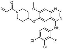 It is built on an anilino-quinazoline scaffold and inhibits the epidermal growth factor receptors EGFR, HER2/neu, and Her 4[3] and binds covalently to its targets.[4]