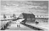 The area traces its history back to 1713 when a marine battery was established at the site by wrecking the floating dock Prøvestenen. The work was led by O. ]udichær. Another marine fortress, Trekroner Fort, was also built at this point. The battery fell into neglect over the following years. In 1723-24 three more ships were wrecked at the site to expand it but it was once again severely damaged by storms and ice and in 1736. In 1736, it was proposed to decommission it but the plans were never executed and it existed with a single guard until 1767–1767.[1] It played a role in the Battle of Copenhagen in 1801.