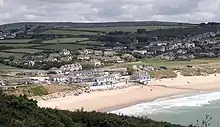 Praa Sands (Cornish: Poll an Wragh),[1][2] (formerly Prah Sands) commonly pronounced pray or prah, is a white-sand beach and coastal village in Cornwall, England. It is in the parish of Breage and lies off the A394 road between Helston and Penzance.[3] Formerly serving the local mining industry, it is now mostly a tourist-orientated area.