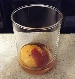 It has been suggested that the raw egg in a prairie oyster may alleviate the symptoms of a hangover since eggs contain cysteine, an amino acid which helps the body break down acetaldehyde, a by-product of processing alcohol.[2][3] However, there is no reliable evidence showing that consuming foods with this amino acid relieves hangover symptoms.[4] Furthermore, research shows that amino acids in raw eggs are less digestible than amino acids in cooked eggs.[5]