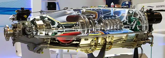 - Turbine: 1-stage gas generator power turbine + 1-stage free power turbine