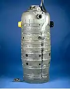 There are nine combustion chambers positioned in a can-annular arrangement. Each chamber has three air inlet hole sizes: the smallest is for cooling, the medium is for burning and the large for forming an air blanket.