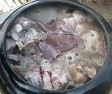 Prdelačka is a traditional Czech pork blood soup made during the pig slaughter season.[1] It is prepared with pork blood pudding, potato, onion and garlic as primary ingredients.[2] It is traditionally made as a part of pig slaughter.