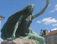 The Prešeren Monument in Ljubljana (Slovene: Prešernov spomenik), also Prešeren Statue in Ljubljana, is a late Historicist bronze statue of the Slovene national poet France Prešeren in Ljubljana, the capital of Slovenia.[1] It stands in the eastern side of Prešeren Square, in front of the Central Pharmacy Building in Ljubljana, the capital of Slovenia. It is among the best-known Slovenian monuments.[2]