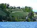 ![]() Seedamm and reconstruction of the medieval lake bridge at Rapperswil, Lake Zurich to the left, Obersee to the right, Hurden in the foreground; the area of three pile dwellings and the Neolithic lake crossing. | |