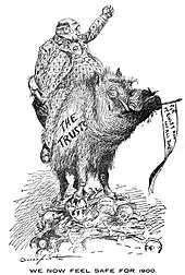 McKinley largely adhered to the laissez-faire attitude that the Cleveland administration had held towards trusts. Attorneys General Joseph McKenna and John W. Griggs pursued some antitrust cases under the terms of the Sherman Antitrust Act and the Supreme Court case of United States v. E. C. Knight Co., but the McKinley administration sympathized with the view that consolidation could be beneficial in many cases. Debate over the role of trusts grew throughout McKinley's presidency, and the issue would become increasingly important after McKinley's presidency.[43]