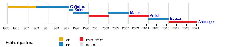 5 years and 210 days | PSIB–PSOE | Armengol I | 2015 | [11] [12] | |
