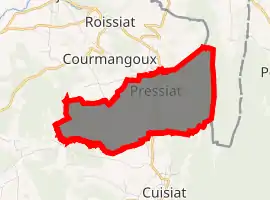 Pressiat is a former commune in the Ain department in eastern France. On 1 January 2016, it was merged into the new commune Val-Revermont.[2]