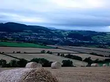 Presteigne (/prɛsˈtiːn/; Welsh: Llanandras: the church of St. Andrew) is a town and community in Radnorshire, Powys, Wales on the south bank of the River Lugg. Formerly the county town of the historic county of Radnorshire, the town has, in common with several other towns close to the Wales-England border, assumed the motto, "Gateway to Wales". The border wraps around three sides of the town (north, east and south). Nearby towns are Kington, Herefordshire to the south and Knighton to the north, and surrounding villages include Norton (within the community) and Stapleton. The town falls within the Diocese of Hereford. The community has a population of 2,710; the built-up area had a population of 2,056.[2] Only a quarter of the community was born in Wales.