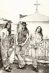 Formed in 1991 during what was then billed as Ozzy Osbourne's farewell tour following the 1991 No More Tears album, Wylde recruited the former White Lion rhythm section of bassist James LoMenzo and drummer Greg D'Angelo, and originally wanted to name the Southern rock-inspired project Lynyrd Skynhead.[3] This lineup recorded two songs, an instrumental entitled "Farm Fiddlin'" for a 1991 compilation album entitled The Guitars That Rule the World, and a cover of the blues-standard "Baby, Please Don't Go" for the 1992 L.A. Blues Authority Vol. 1 compilation.