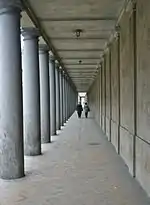 Mogens Clemmensen and Arne Nystrøm expanded the museum from 1929 to 1938, adding a large new four-winged building on the rear of the original mansion as well as a more narrow connecting wing between the new and old buildings which create a courtyard space open toward Ny Vestergade. On the opposite (Stormgade) side, they created a colonnade along the entire length of the complex, from Vester Voldgade to Frederiksholms Kanal. It has 38 columns of granite from the island of Bornholm.