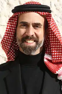 Prince Ghazi bin Muhammad (born 15 October 1966) is a Jordanian prince and a professor of philosophy. [1][2][3] He is the son of Prince Muhammad bin Talal of Jordan and his first wife, Princess Firyal. He is a grandson of King Talal of Jordan and thus a first cousin of King Abdullah II and eighteenth in the line of succession to the Jordanian throne. He is well known for his religious initiatives, about which a book was published in 2013.[4]
