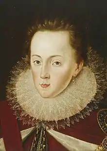 The queen's household at Winchester included; Anna Livingstone, Margaret Stewart, Anna Campbell, Jean Drummond, and Margaret Hartsyde.[17] Margaret Stewart danced at Basing House in September 1603 and played the part of Concordia in The Vision of the Twelve Goddesses.[18] Anna Livingstone was a school child in the household of Princess Elizabeth, who gave her dancing master a ruby ring at Christmas.[19]