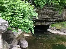 This large, natural spring flows from a cave located in the heart of downtown Princeton. The town's founder chose to build his home above the spring and established a sawmill close by. Ancient trails used by animals and early Indians, and later by stagecoaches and pioneers, all met at the spring. They led to the major rivers of the area, the Cumberland and the Ohio.