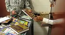 Funding and space are two major challenges for prison libraries.[10] Prison libraries are on the low end of budget priorities for prisons.[9] It is difficult to provide up-to-date information and classes with a limited budget and space. Associated with limited budgets are time constraints. Some prison library staff feel they do not have the time to complete all of the tasks they need to because prison libraries are under-staffed.[11] Interestingly, recent technological developments such as the choice to transition to tablet-based has led to prison elimination of law libraries in South Dakota and has threatened to end book donations to prisoners and their libraries in favor of charging prisoners for books available in e-book format.[12] Another challenge is the literacy of inmates. For example, in the United States, "seventy-five percent of the state prison population did not complete high school or are classified as low literate".[13] Other challenges include security risks. Some librarians feel like they are guards and other libraries are monitored by correctional officers.[14] Finally, some libraries have to deal with damage and theft of items.[14]