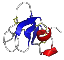Hevein is called Hev b 6 under the WHO allergen nomenclature.[8][9] There are three entries under this classification, corresponding to the conformational epitopes Hev b 6.01, Hev b 6.03, and Hev b 6.03. They correspond to the full Pro-Havein protein, the matur Hevein (N-terminal), and the C-terminal Barwin domain respectively.[10]