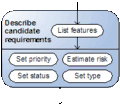 Sometimes an activity consists of both sequential and unordered sub-activities. The solution to this modeling issue is to divide the main activity in different parts. In Figure 4 an example is illustrated, which clarifies the necessity to be able to model unordered activities. The example is taken from the requirements analysis workflow of the Unified Process. The main activity, “describe candidate requirements”, is divided into two parts. The first part is a sequential activity. The second part consists of four activities that do not need any sequence in order to be carried out correctly.
