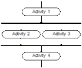Activities can occur concurrently. This is handled with forking and joining. By drawing the activities parallel in the diagram, connected with a synchronization bar, one can fork several activities. Later on these concurrent activities can join again by using the same synchronization bar. Both activities and sub-activities can occur concurrently. In the example of Figure 5, Activity 2 and Activity 3 are concurrent activities.