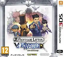Professor Layton vs. Phoenix Wright: Ace Attorney[lower-alpha 1] is a visual novel adventure puzzle video game for the Nintendo 3DS, and was developed by both Capcom and Level-5, the latter publishing it in Japan while Nintendo published it worldwide. The game is a crossover between two games series from both developers, combining the puzzle and exploration elements of Level-5's Professor Layton series, and the general trial mechanics of Capcom's Ace Attorney adventure series, the latter enhanced by the addition of a few new elements.[6][7] Shu Takumi, the series director for the Ace Attorney series, assisted with the scenario designs for the game. The plot focuses on Professor Layton and Phoenix Wright, along with their respective assistants, working together to solve the mystery behind a young girl that they both encounter separately, and a strange world they are brought to through her, with Layton focused on finding clues to solve the mystery, while Wright focuses on protecting people who are put on trial for being "witches".