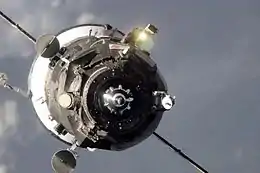 The spacecraft docked with the Pirs module at 18:40 UTC on 5 August 2007.[2] It remained docked for almost 139 days before undocking at 03:59 UTC on 22 December 2007.[3] Following undocking it conducted technological experiments and research as part of the Plazma-Progress programme for a month prior to being deorbited. It was deorbited at 19:06 UTC on 22 January 2008.[3] The spacecraft burned up in the atmosphere over the Pacific Ocean, with any remaining debris landing in the ocean at around 19:51 UTC.[4][5]