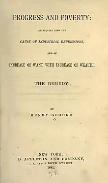 Progress and Poverty: An Inquiry into the Cause of Industrial Depressions and of Increase of Want with Increase of Wealth: The Remedy is an 1879 book by social theorist and economist Henry George. It is a treatise on the questions of why poverty accompanies economic and technological progress and why economies exhibit a tendency toward cyclical boom and bust. George uses history and deductive logic to argue for a radical solution focusing on the capture of economic rent from natural resource and land titles.
