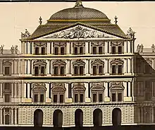 The façade elevations of the palace were discovered in 2014 by researchers at the Lisbon Academy of Sciences in the academy archives.[3] Hélder Carita, a researcher with NOVA University Lisbon's FCSH, lead the investigation into the origin and context of the architectural plans. While it is assumed that Dionizio S. Dionizio executed these plans while under the leadership of Eugénio dos Santos, the prominence of his name on the plans, while also not being one of the prominent engineers and architects leading Lisbon's reconstruction, raise questions about the context in which these elevations were drawn up.[4]