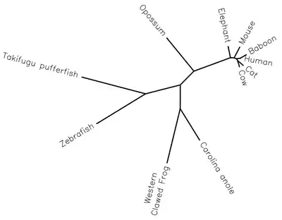 The most distant relative found through BLAST with a significant similarity to PRR12 is the fish Danio rerio. Orthologs were found in fish, amphibians, reptiles, and other mammals. While no PRR12 orthologs were found in birds, birds did have orthologs to the QSER1, which is a close paralog to human PRR12.[13]