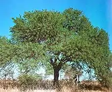 Prosopis nigra (synonym Prosopis algarrobilla) is a South American leguminous tree species that inhabits the Gran Chaco ecoregion (in particular, the transition zone between the Wet Chaco and the Southern Chaco), in Argentina and Paraguay. It is known as algarrobo negro in Spanish, which means "black carob tree" (the Spanish settlers gave it that name, as they did with many other species of genus Prosopis, because of its similarity to the European carob tree). It is also variously called algarrobo dulce, algarrobo morado and algarrobo amarillo ("sweet", "purple" and "yellow" carob tree, respectively).