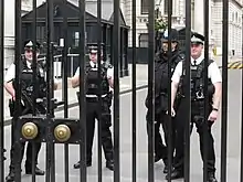 The Protection Command is one of the Commands within the Specialist Operations directorate of London's Metropolitan Police Service.[1] The command specialises in protective security and has two branches: Royalty and Specialist Protection (RaSP), providing protection to the Royal Family and close protection to government officials, and Parliamentary and Diplomatic Protection (PaDP), providing uniformed security to government buildings, officials and diplomats.[2] In contrast with the vast majority of British police officers, many members of the Protection Command routinely carry firearms in the course of their duties and all are Authorised Firearms Officers.[3][4]