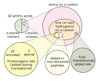 | Wikimedia Commons has media related to Proteinogenic amino acids. |