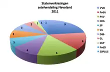 Since the 2011 provincial elections, the seats of the States of Flevoland are as following:[2]